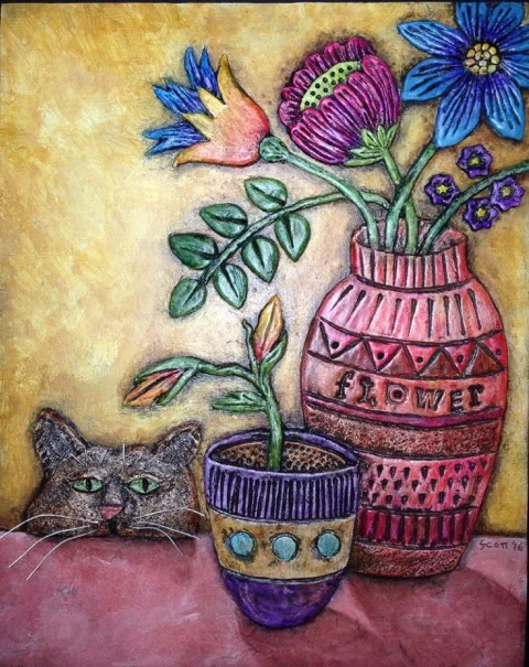 I Haz Flowerz, Paper Clay and Acrylic on panel